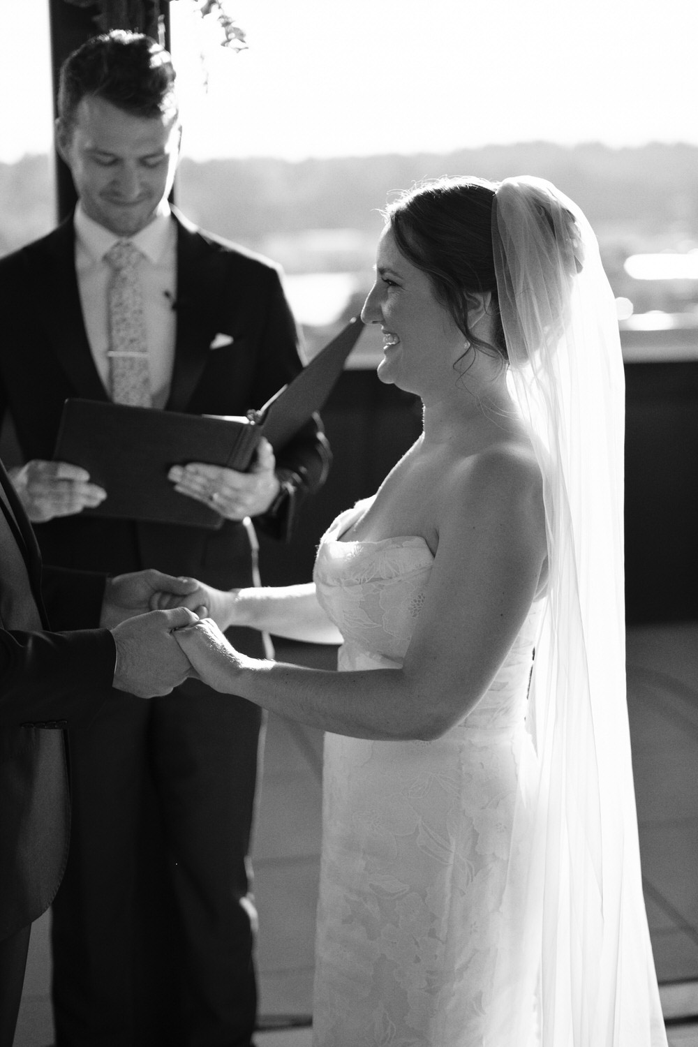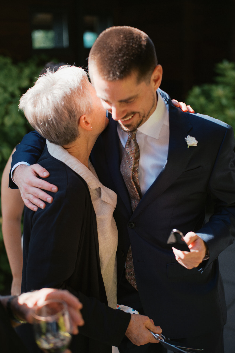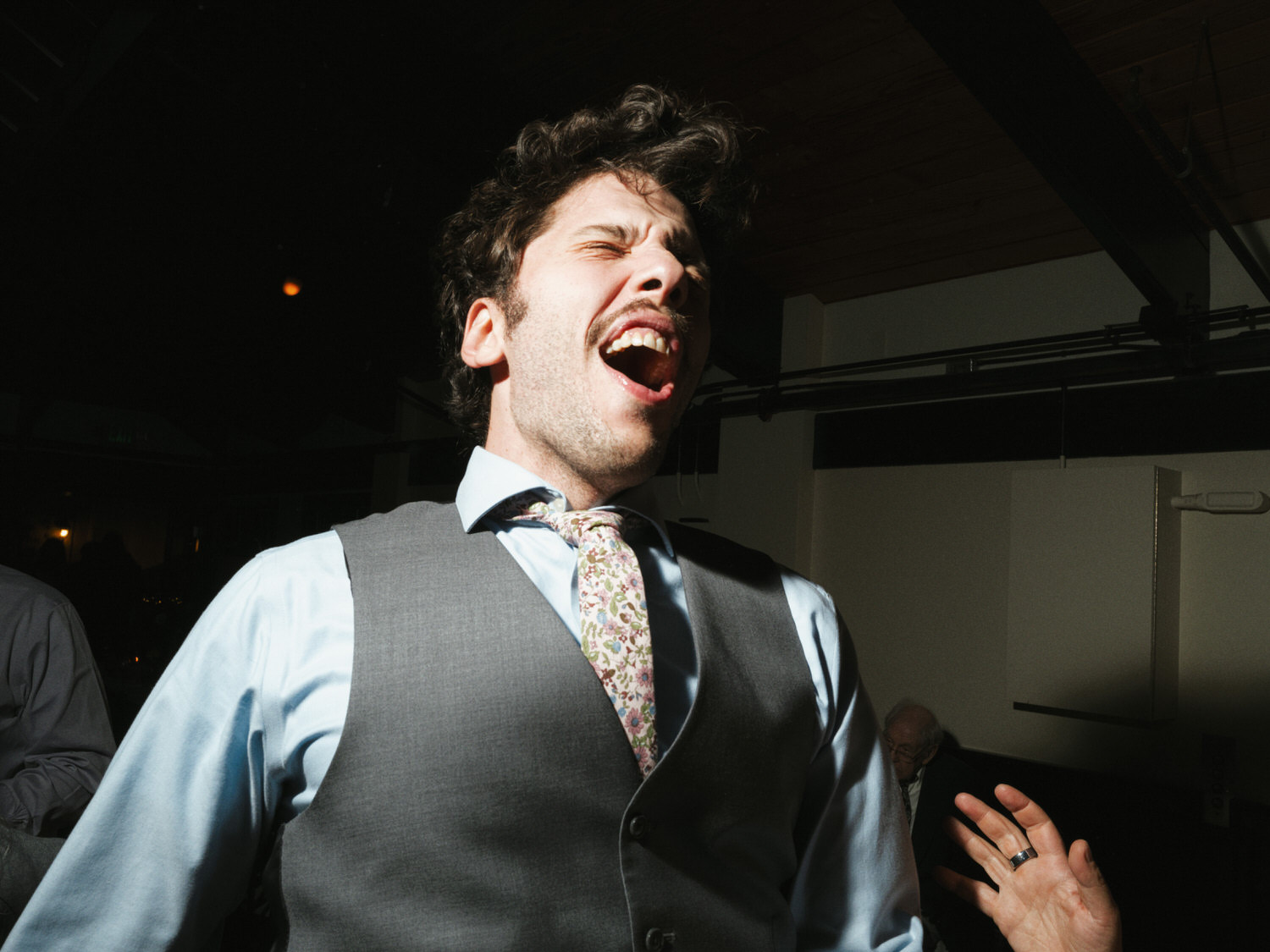 The couple, their families, and the wedding party were all staying together on the top floor of Hotel Ballard, a fantastic arrangement of hotel rooms that open onto the venue’s Olympic Rooftop Pavilion. This gave a wonderful intimacy to the pre-wedding hours (especially on a perfect Seattle September day). With the sun shining the crew hung out with their hotel room doors all open, mingling back and forth, sitting outside, family in and out. Snacks out. Drinks half-finished. No one rushing. No one performing. Just people enjoying each other. That’s usually a good sign.