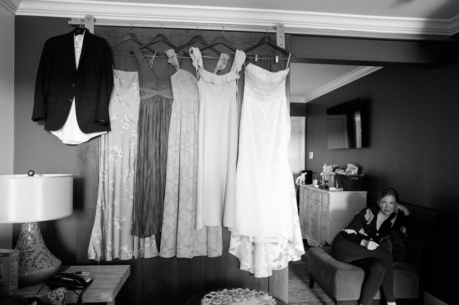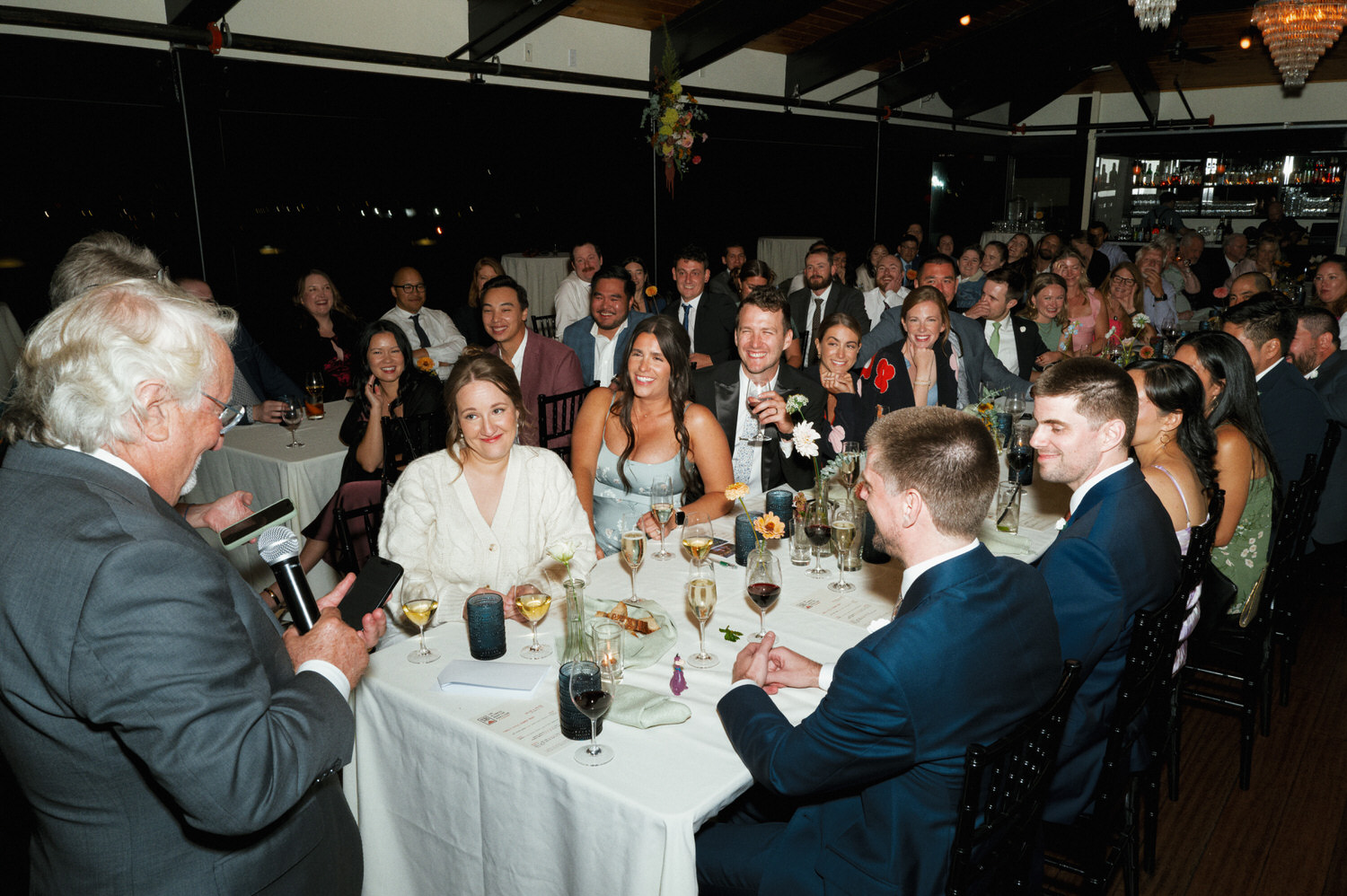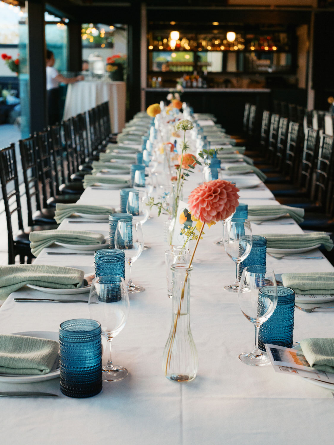 The couple, their families, and the wedding party were all staying together on the top floor of Hotel Ballard, a fantastic arrangement of hotel rooms that open onto the venue’s Olympic Rooftop Pavilion. This gave a wonderful intimacy to the pre-wedding hours (especially on a perfect Seattle September day). With the sun shining the crew hung out with their hotel room doors all open, mingling back and forth, sitting outside, family in and out. Snacks out. Drinks half-finished. No one rushing. No one performing. Just people enjoying each other. That’s usually a good sign.
