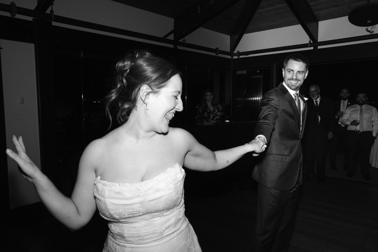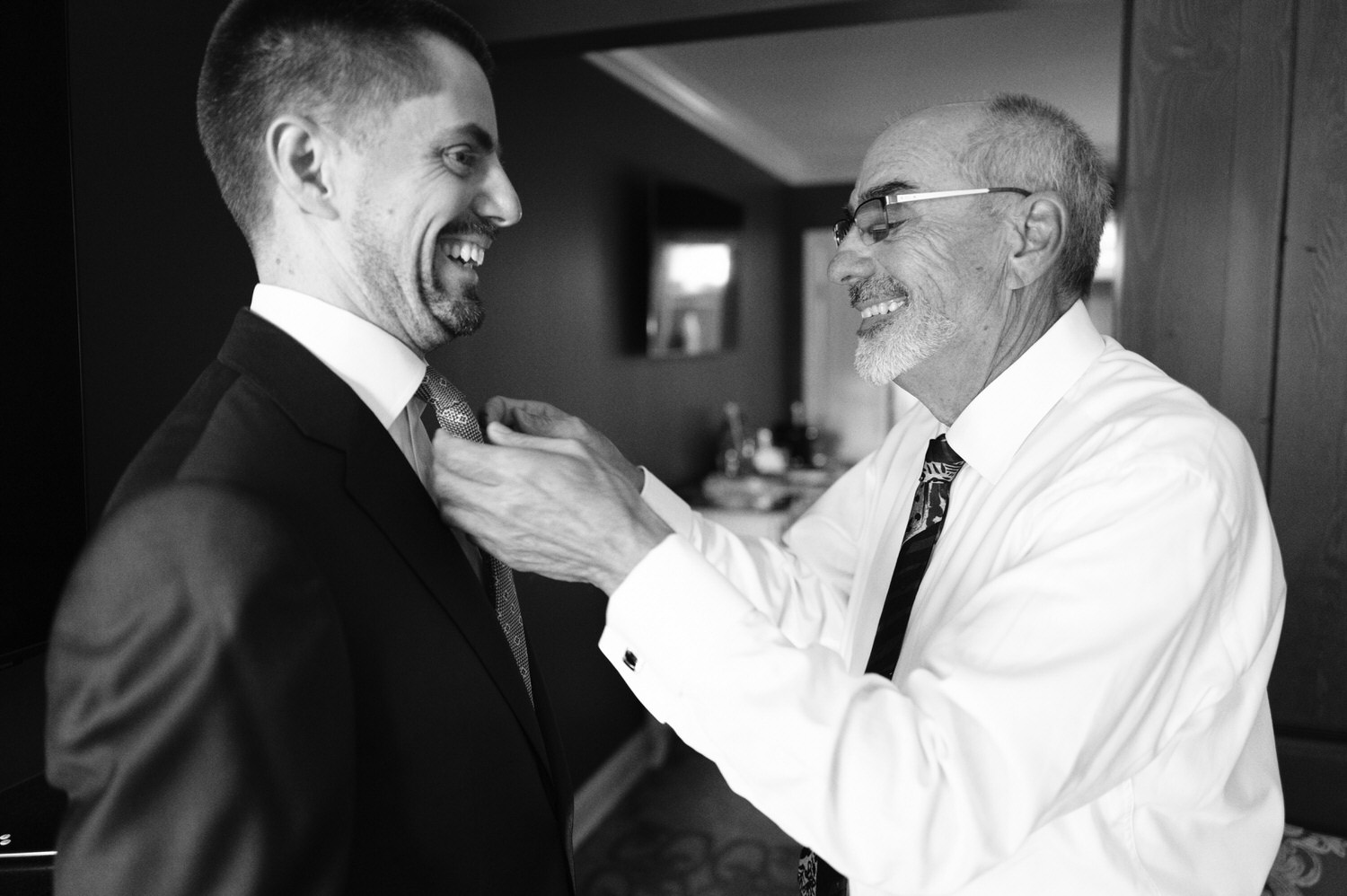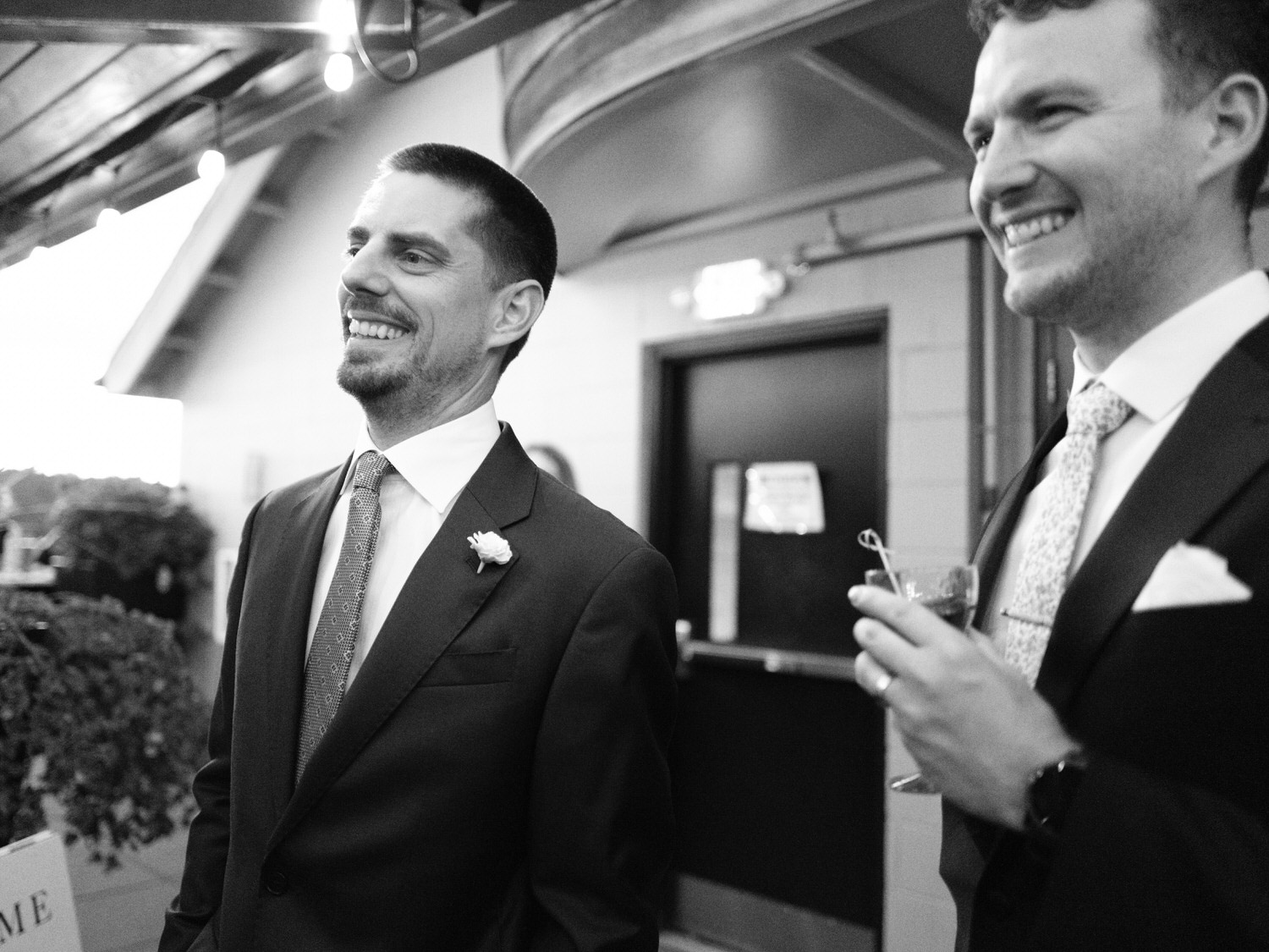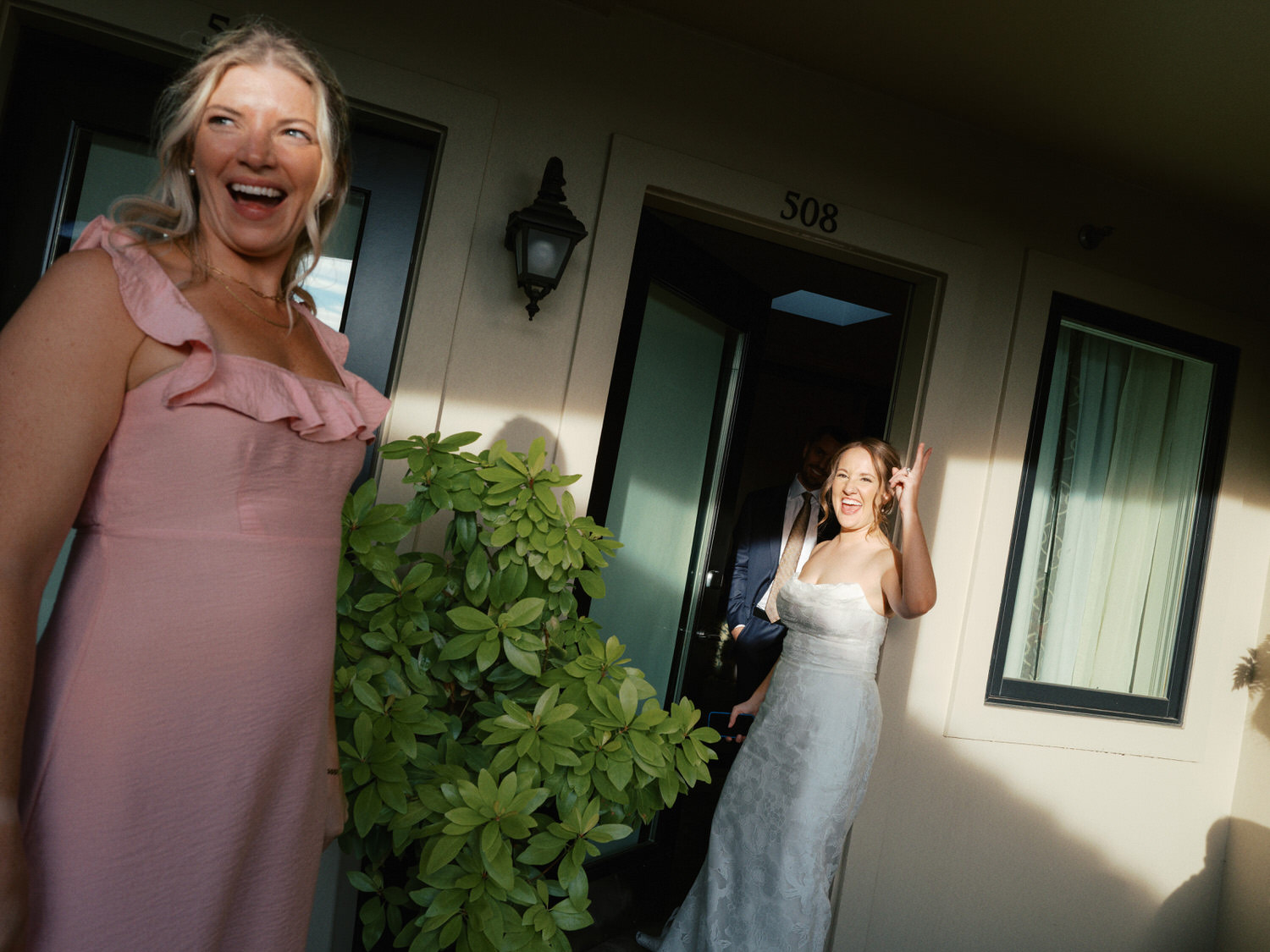 The first look was casual. I like to ask my couples “if there was no camera here and the first look was about the two of you, and not the photo, how would you do it.” So Helen waited in the shaded back area of the pavilion as Kevin came out of his room, laughing as he saw her for the first time.