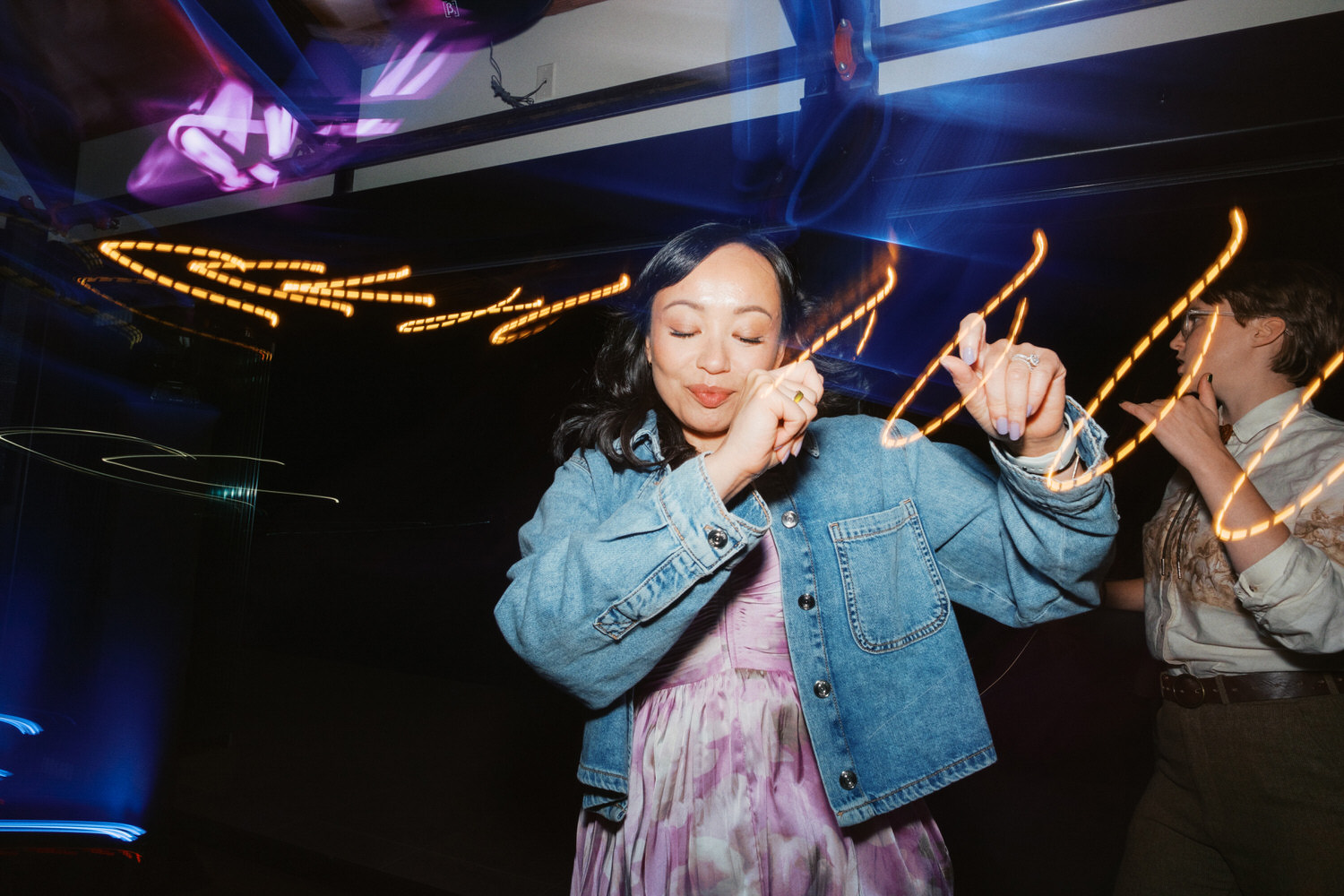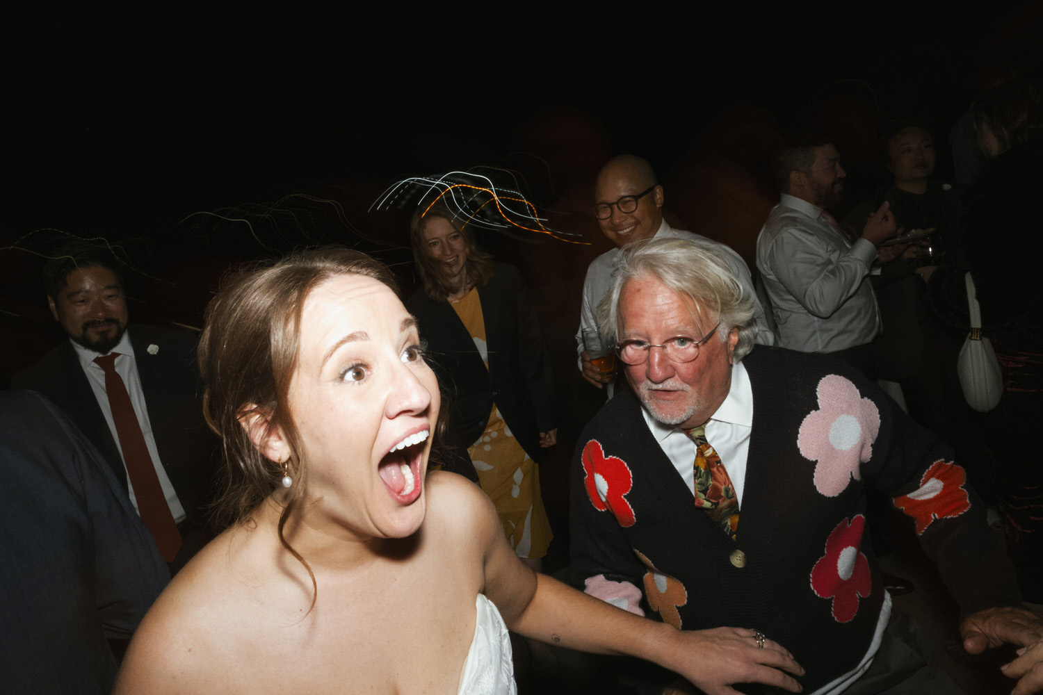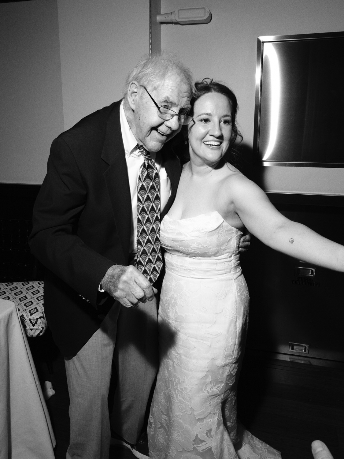And then the dancing started. Chaos. Beautiful chaos. Helen ended up in the center of the dance floor, head back, laughing, fully in it. A drink in one hand, the rest of the world gone. The moment the family won’t forget is Helen’s grandfather ditching his walker to dance with her, joy flowing all around.