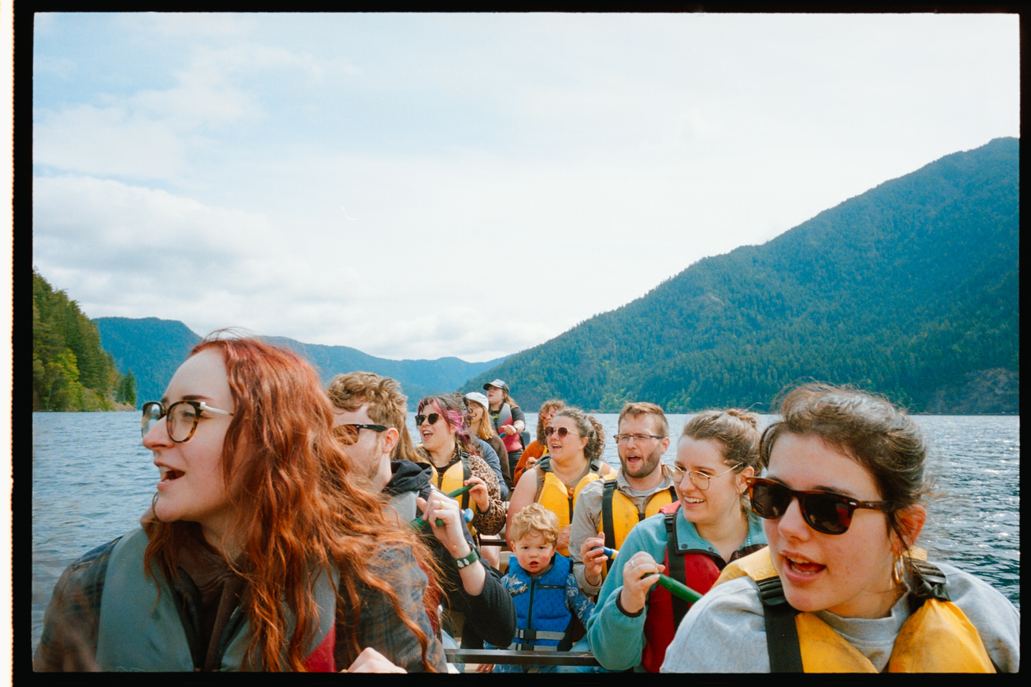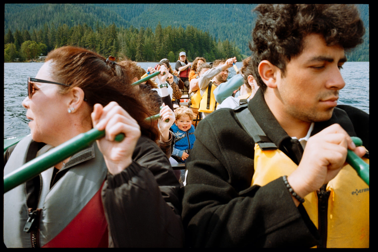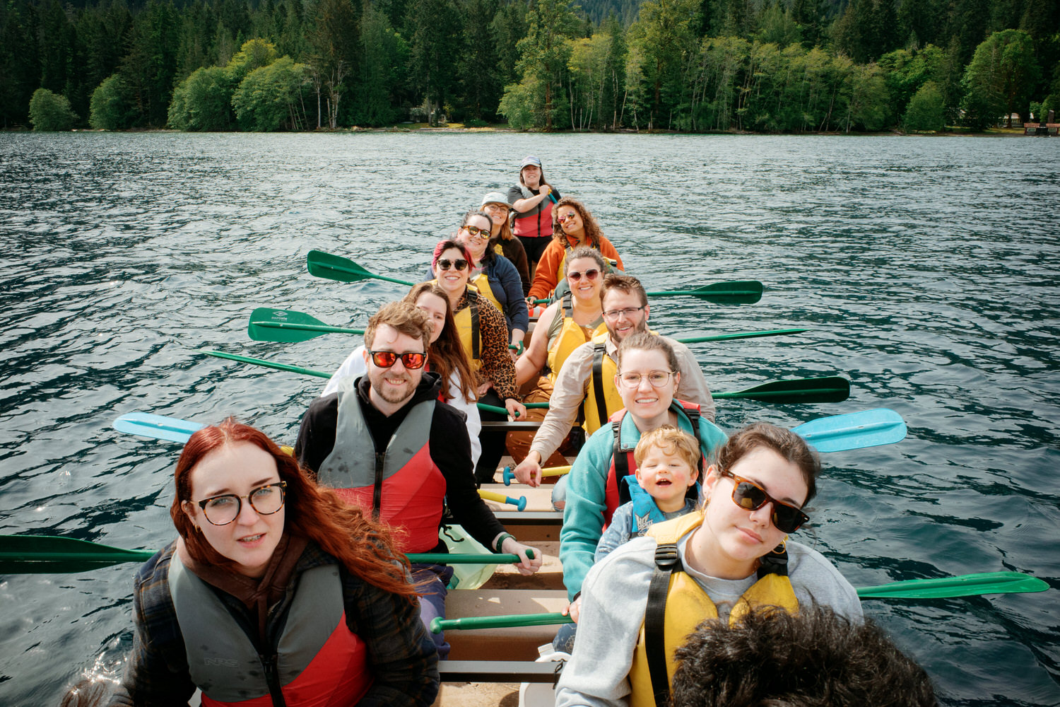 A lot of wedding weekends have some sort of Sunday farewell brunch, but Sara and Robert took the Summer Camp Wedding theme to the next level. On Sunday the crew packed into the long Canoes for a guided trip around Lake Crescent. This career has taken me some amazing places, but getting to photograph this little adventure was a real highlight.